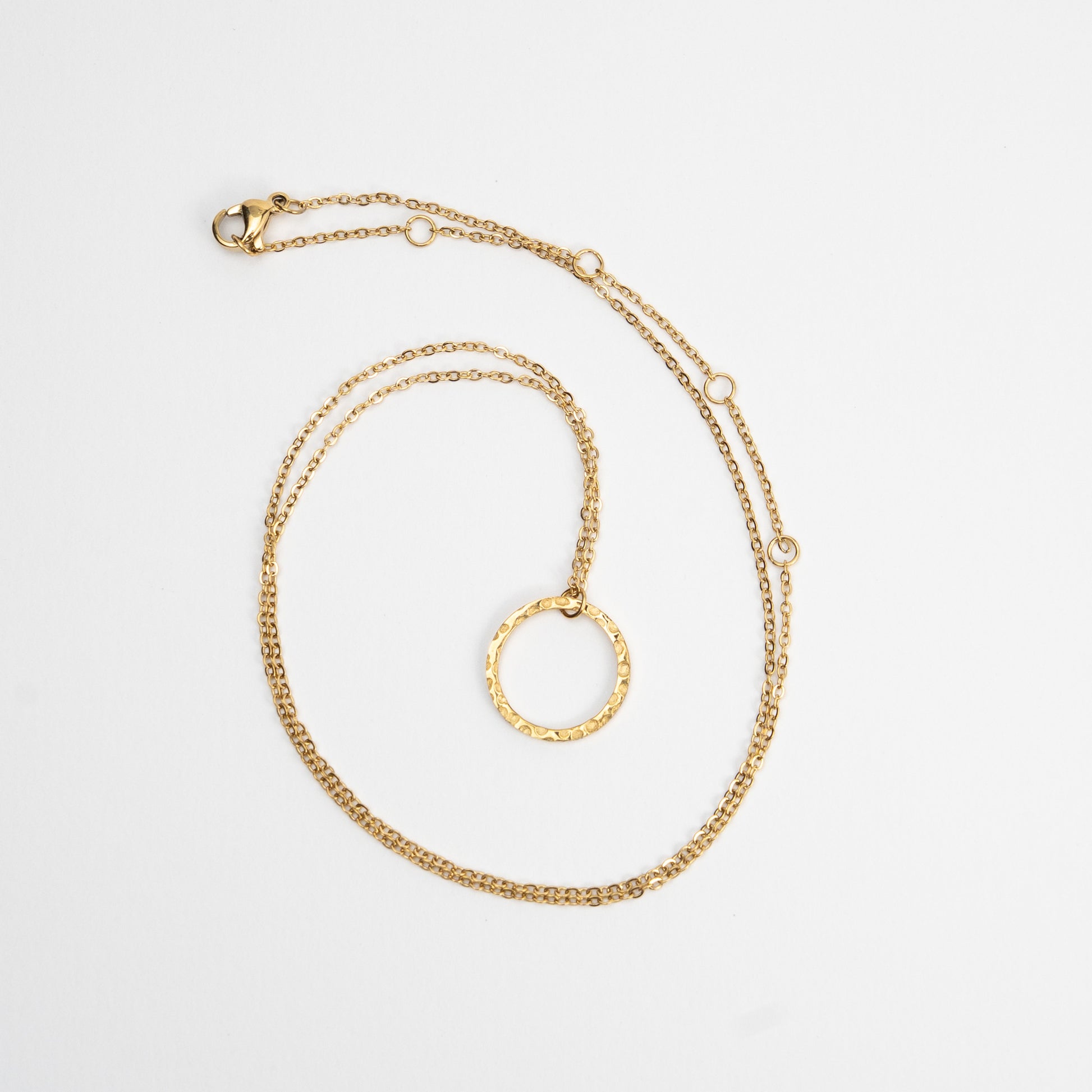 The Round Circle Pendant Necklace by Ghzaal embodies minimalist elegance with its smooth, polished circular pendant. Crafted in 18k gold plating, this necklace is waterproof, hypoallergenic, and designed for daily wear.